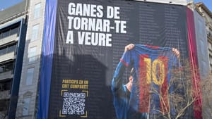 Marc Ciria has unfurled a huge banner bearing Lionel Messi in Barcelona's city centre as he campaigns to replace Joan Laporta. The poster borrows the slogan Laporta used near the Santiago Bernabeu: "Looking forward to seeing you again." Elections take place on March 15th, with Laporta the favourite but facing rivals including Victor Font, Xavier Vilajoana, Daniel Juan and William Maddock.