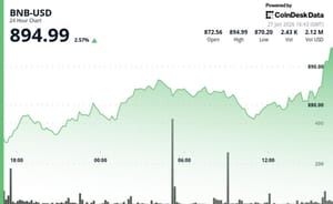 The launch follows other product moves tied to BNB, including Grayscale’s U.S. filing for a spot ETF, GBNB, and a still-pending BNB ETF bid by VanEck. Trading activity showed increased volume as BNB pushed above the $885 range, according to CoinDesk Research's technical analysis data model, and the CoinDesk 20 index rose roughly 1% in the last 24 hours.