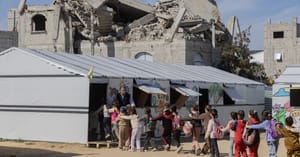 “Here, it is safe. No drones or bombs. The best thing is sitting at a desk and seeing the teacher and the board, and holding a pencil again,” said Raseel al‑Shaer, 12, about classes at an Academy of Hope site in Gaza. The network, started by Dr. David Hasan, a Palestinian American neurosurgeon, now serves some 9,000 pupils in grades one through nine across five campuses in southern Gaza; students cycle through three‑hour shifts and receive hot meals and medical and psychological care.