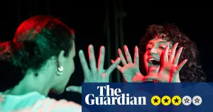 Pip Williams’s clean direction immediately unsettles. Rachel-Leah Hosker and Alex McCauley flit between reciting community guidelines with fierce fixed smiles and playing a pair of teens unable to escape the story of the girl who was murdered in the woods. Patch Middleton’s sound design sustains tension, a thundering message from a worried mother mutating into an ominous threat.