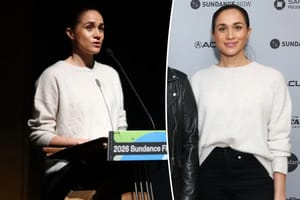 Meghan Markle attended the Sundance Film Festival earlier this week with Prince Harry for the premiere of "Cookie Queens," and spoke at the event wearing Brochu Walker’s Everyday Cashmere Bright Crew in the Bisque Melange color.