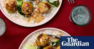 Rukmini Iyer’s ginger sesame meatballs with rice and greens