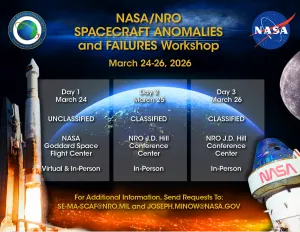 NASA and NRO will jointly host the Spacecraft Anomalies and Failures (SCAF) Workshop March 24–26, 2026. The event brings together government, industry, academia, allies, and international partners to share analysis, trends, and lessons learned from anomalies and failures to prevent them from reoccurring.