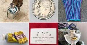 Some items are small and specific: a box of Pearl Harbor business cards, a miniature chair made from champagne wire that recalled the start of a marriage, a jar of cinnamon labeled by a brief pandemic lover, and a dime carried for luck that led to a 40-year marriage.